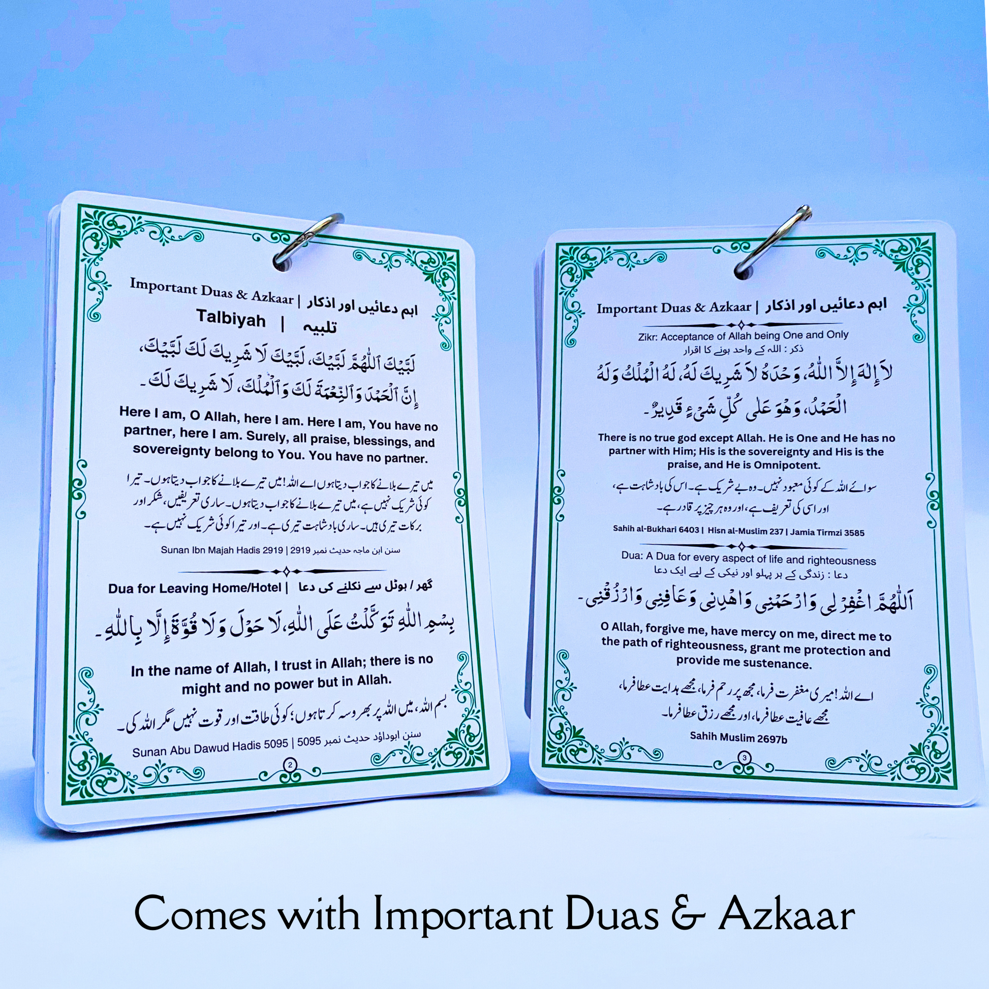 No distractions, no confusion. This compact guide is printed on durable, premium quality cards and divided into easy-to-follow sections so you can stay spiritually connected during every moment of your Hajj!